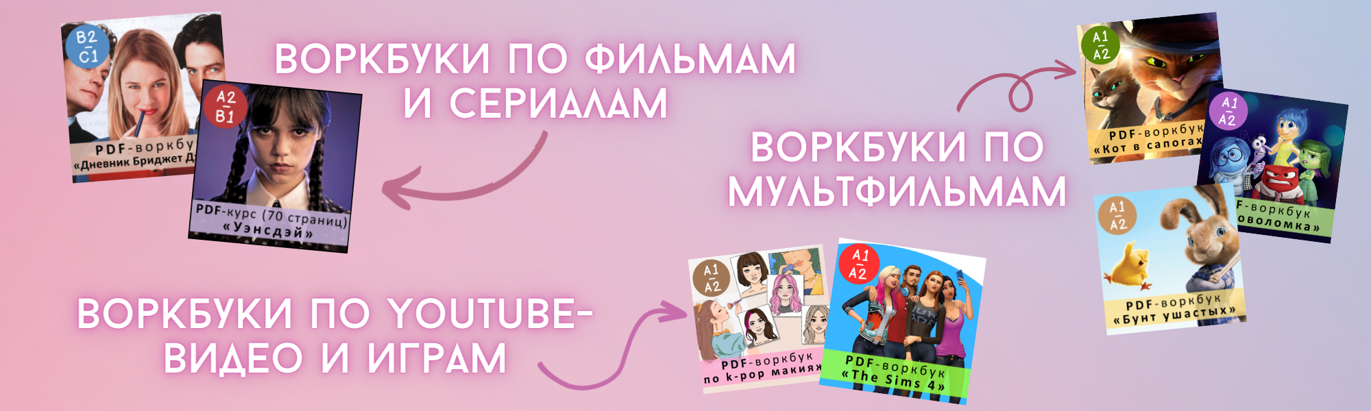 Здесь вы найдете множество материалов: pdf-воркбуки по фильмам, мультфильмам и сериалам; warm-up материалы на различные темы; игры-презентации и многое другое 🤗