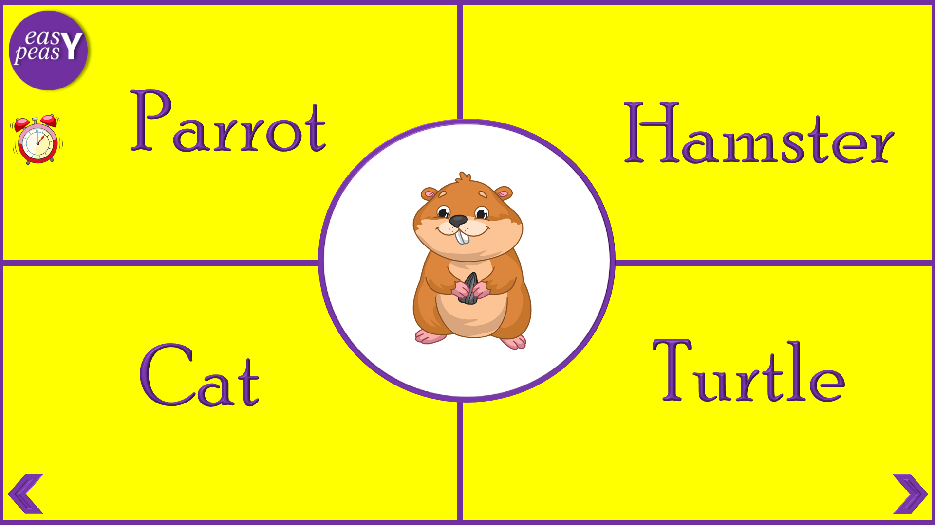 Pets quiz: dog, cat, turtle, hamster, mouse, parrot, rabbit.