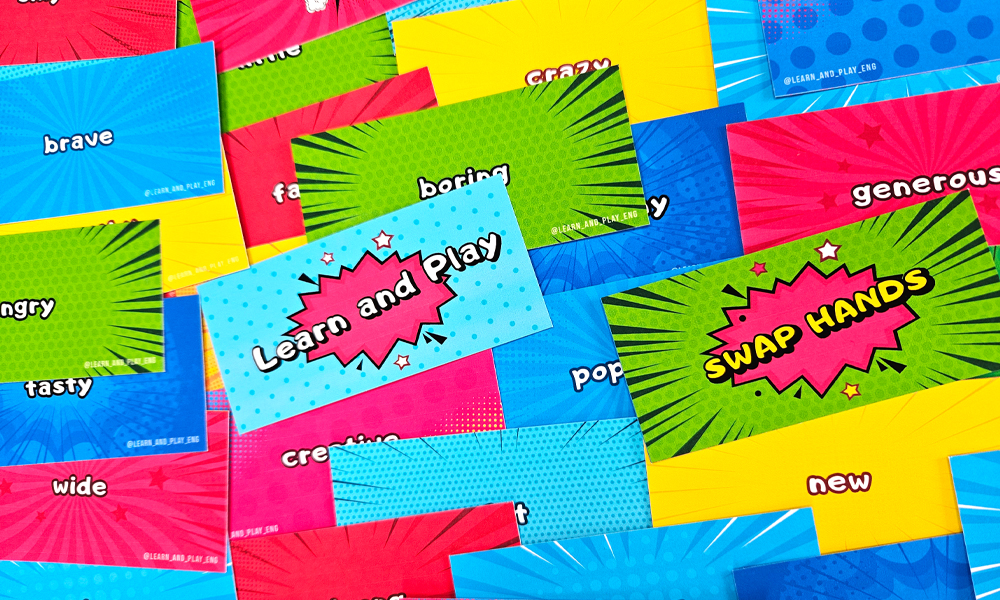 Игроки по очереди берут карты из колоды и называют сравнительную и превосходную степень прилагательного, написанного на карточке. В случае правильного ответа они забирают карточку себе.